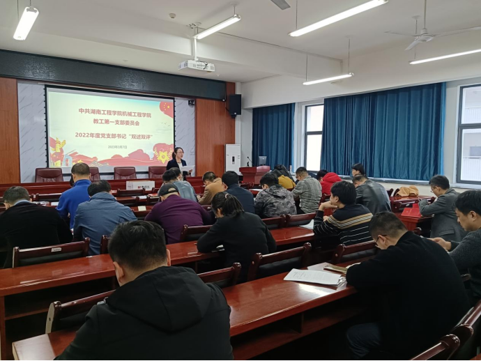 2023年3月7日下午,公司教工一支部全体党员在机械楼312会议室进行了2022年度党支部书记“双述双评”工作,召开了组织生活会并对党员进行民主评议。会议由支部书记程玉兰主持。