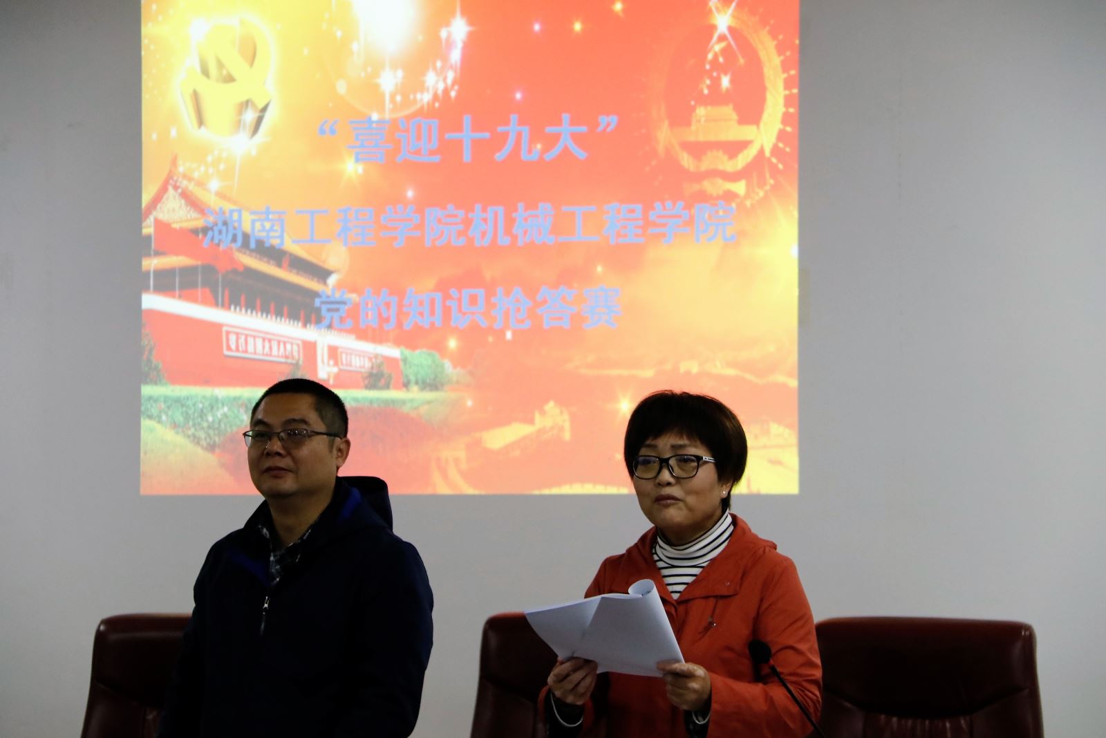 10月17日下午,tyc122ccVIP于机械楼312开展教师党员“喜迎十九大”党的知识抢答赛。此次比赛由tyc122ccVIP副经理卿上乐组织,党总支副书记李儒峰和工会副主席范冬英主持,全体教师党员参加。
