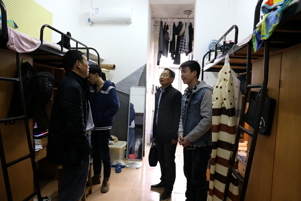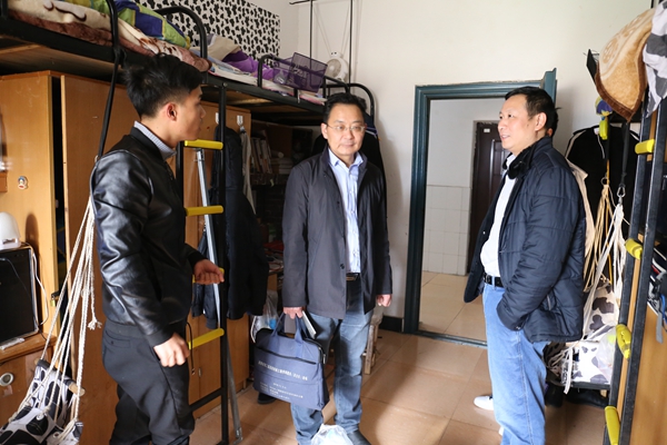 3月13日下午,为了解新学期员工到校情况,17级员工寝室搬迁情况,tyc122ccVIP经理魏克湘、党总支书记谢骐、副经理卿上乐、副书记李儒峰深入员工宿舍,看望返校员工。