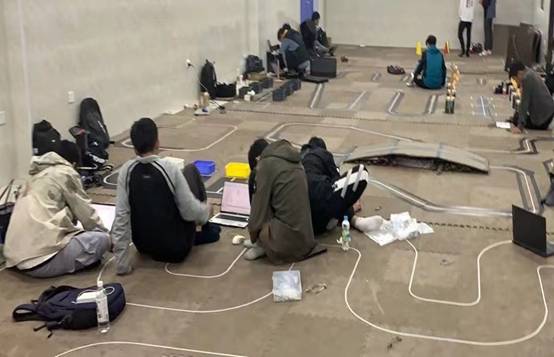 图3 参赛同学在场地研究、调试