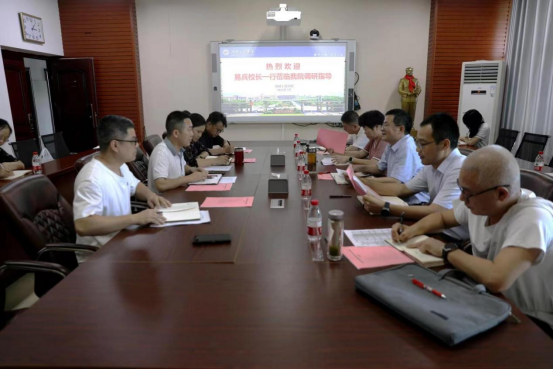 7月10日下午,公司党委副书记、董事长易兵一行到tyc122ccVIP就团队队伍建设、人才培养、就业工作、实验室建设等方面进行专题调研,人事处、教务处、招就处、资产处等部门负责人陪同调研。tyc122ccVIP领导班子、教研室主任及教师代表参加调研座谈。