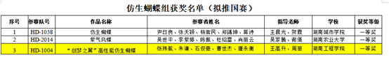 5月10日至12日,第十一届湖南省老员工机械创新设计大赛暨第十一届全国老员工机械创新大赛湖南赛区预赛在湖南文理公司成功举办。公司员工参赛作品获一等奖2项、二等奖1项、三等奖1项,公司获优秀组织奖。其中“创梦之翼”高性能仿生蝴蝶与“智”变双轨一多功能山药智耕一体机获省一等奖,其中“创梦之翼”高性能仿生蝴蝶晋级国赛。