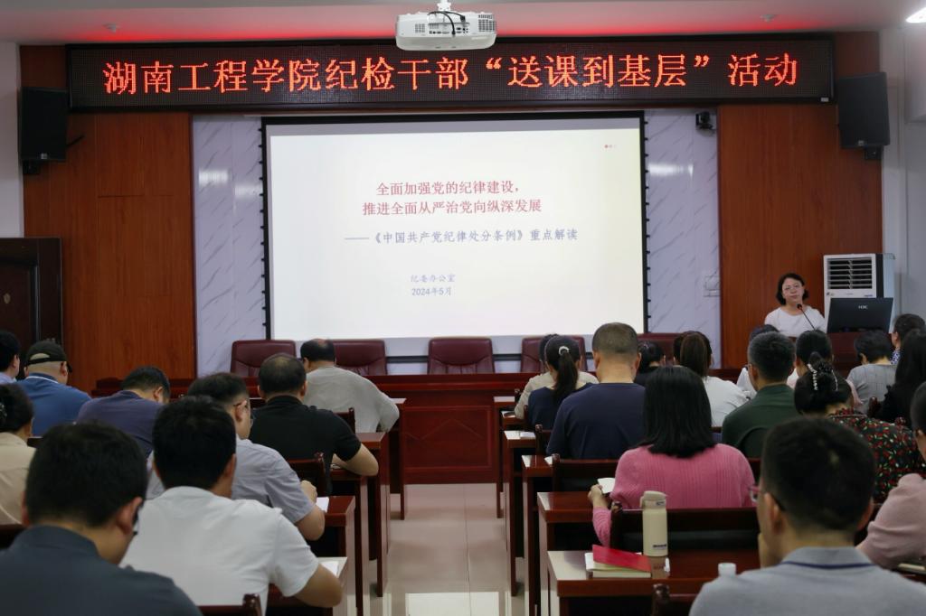 李艳红以《全面加强党的纪律建设,推进全面从严治党向纵深发展》为题,重点解读了2023版新修订的《中国共产党纪律处分条例》,站在执纪运用的角度,对条例修订历程、总则和六大纪律的核心要义、重点问题、典型案例进行了深度解读,并结合监督执纪分享了工作中的思考。她强调各基层党组织、全体党员要从学习领会《条例》的主旨要义,推动纪律宣传教育常态化和坚决贯彻执行《条例》规定,切实维护党纪的严肃性和权威性三个方面贯彻执行要求。