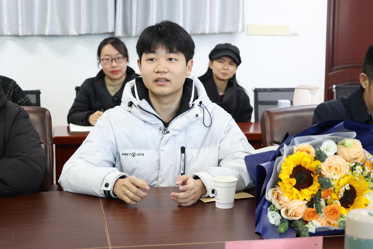 首先,黄昕对邓辉武同学捐献造血干细胞、挽救他人生命的爱心善举给予高度肯定,对他们无私奉献、乐于助人的精神表示崇高敬意,代表公司为他送上鲜花和慰问金。邓辉武同学表示,军训时了解到捐献造血干细胞的相关知识,就产生了强烈的捐献愿意,尽管父母最初对干细胞捐献有些顾虑,但在公司和家人的沟通后,最终得到了父母的支持。他谈到:“捐献过程中因注射动员剂身体不适,辅导员和班主任全程对我给予了无微不至的关怀,不仅为我安排学习小组补习课程,更在心理上给予我疏导,最终让我顺利完成了捐献。”