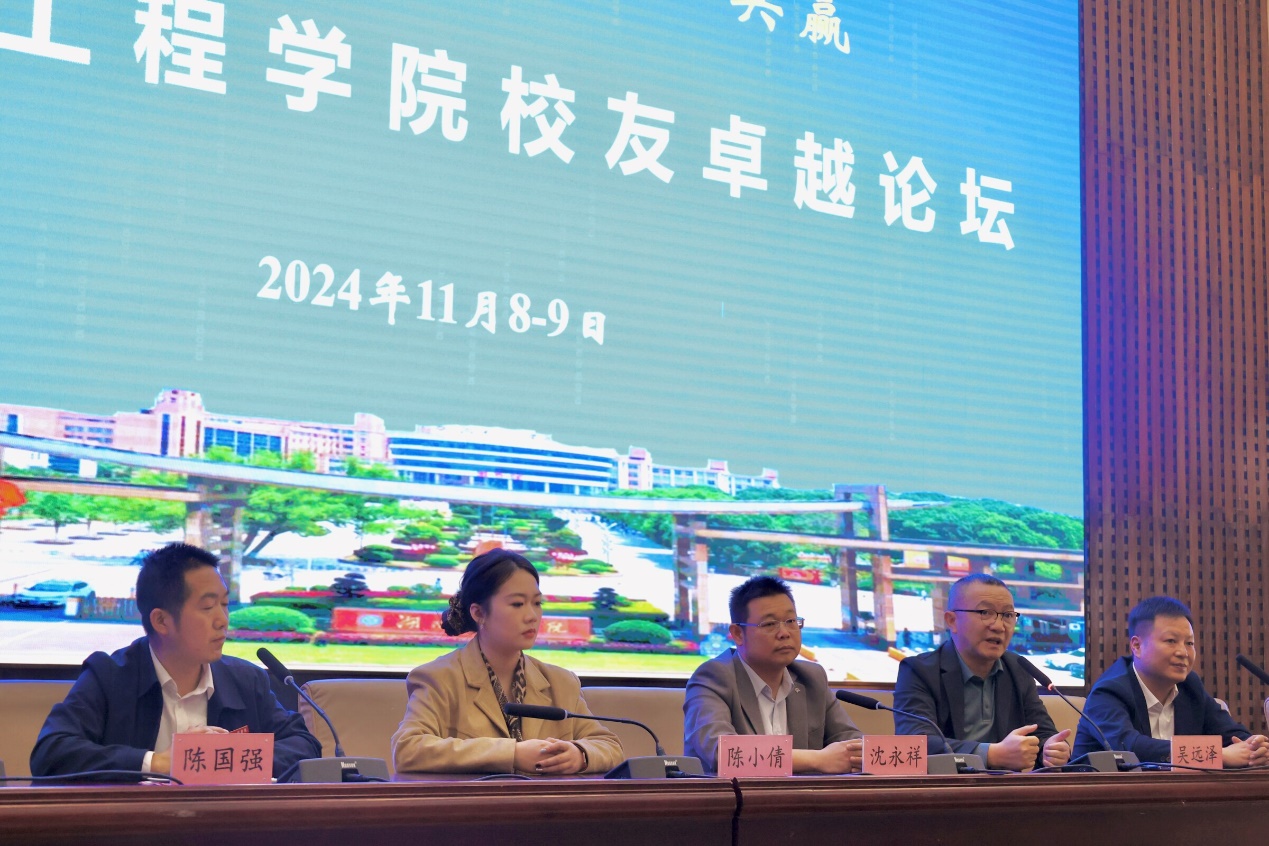在交流环节,员工们勇跃发言,交谈甚欢。“如果一个公司、一个企业不在创新上多投入、多思考,竞争力就会变得越来越弱。”重庆员工会会长、四川天坤模具制造有限公司和四川轻舟汽车轻量技术有限公司董事长任时权员工结合自己的创业经历分享到。深圳乔合里科技股份有限公司董事长吴远泽员工结合公司的愿景“可靠、绿色”,强调了质量、成本、性能三合一的重要性。长沙员工会执行会长、广东精源科技有限公司、湖南生命之花健康管理咨询有限公司董事长沈永祥员工通过讲述自己的成长经历,他表示公司的培养计划与企业用人的需求相契合,企业将继续在母校招聘更多的人才。其他员工也分享了自身在职业生涯中的宝贵经验与成果。现场气氛热烈,员工和公司教师代表围绕学科专业发展的诸多方面展开深入探讨,大家各抒己见,碰撞出了许多思维的火花。
