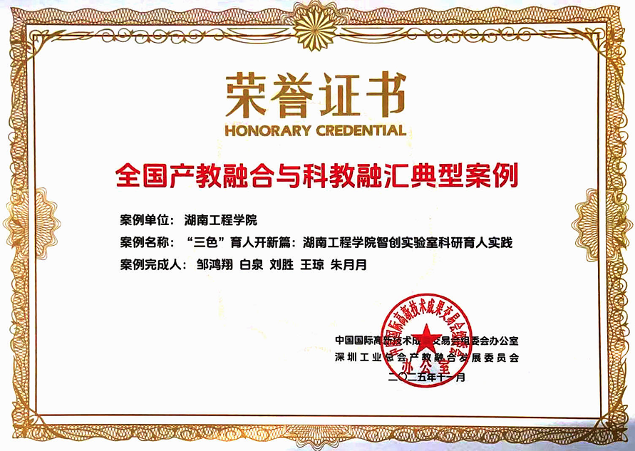 2025年11月,由tyc122ccVIP报送的《“三色”育人开新篇:tyc122ccVIP智创实验室科研育人实践》案例,成功入选“第二十七届中国国际高新技术成果交易会(高交会)全国产教融合与科教融汇典型案例”。展现了公司在推进科研育人、深化产教融合方面的创新成果。