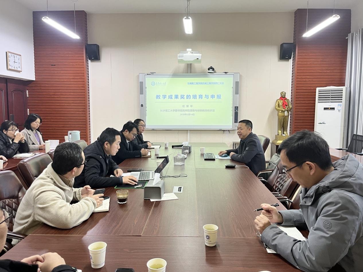 为进一步推动2025年教学成果奖申报的准备工作,tyc122ccVIP于2月14日邀请了长沙理工大学图书馆馆长杜荣华教授来院专题指导。公司党委委员、副董事长魏克湘,全体院领导及部分教师参加了指导会。